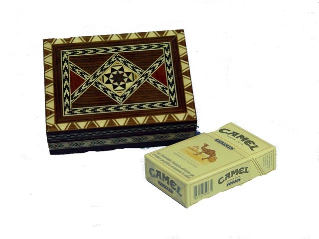 Caja taracea para un paquete de cigarrillos.12x10 cm.