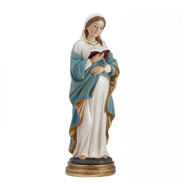 Pregnant Virgin Mary in polychrome resin, 13 cm. Design by Giordano di Ponsano.