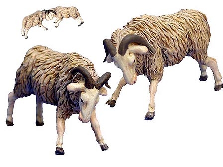 Couple of male sheeps fighting. For figures of 12cm. Piece modeled with toothpick.