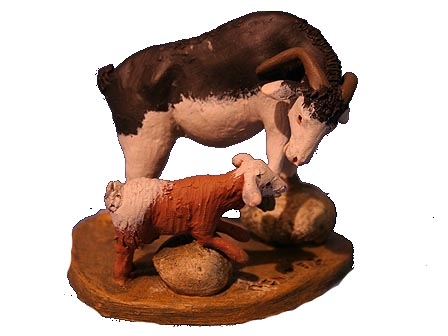 Grupo cabra en piedra con cabrito para figuras de 14 cm. Pieza modelada a palillo.
