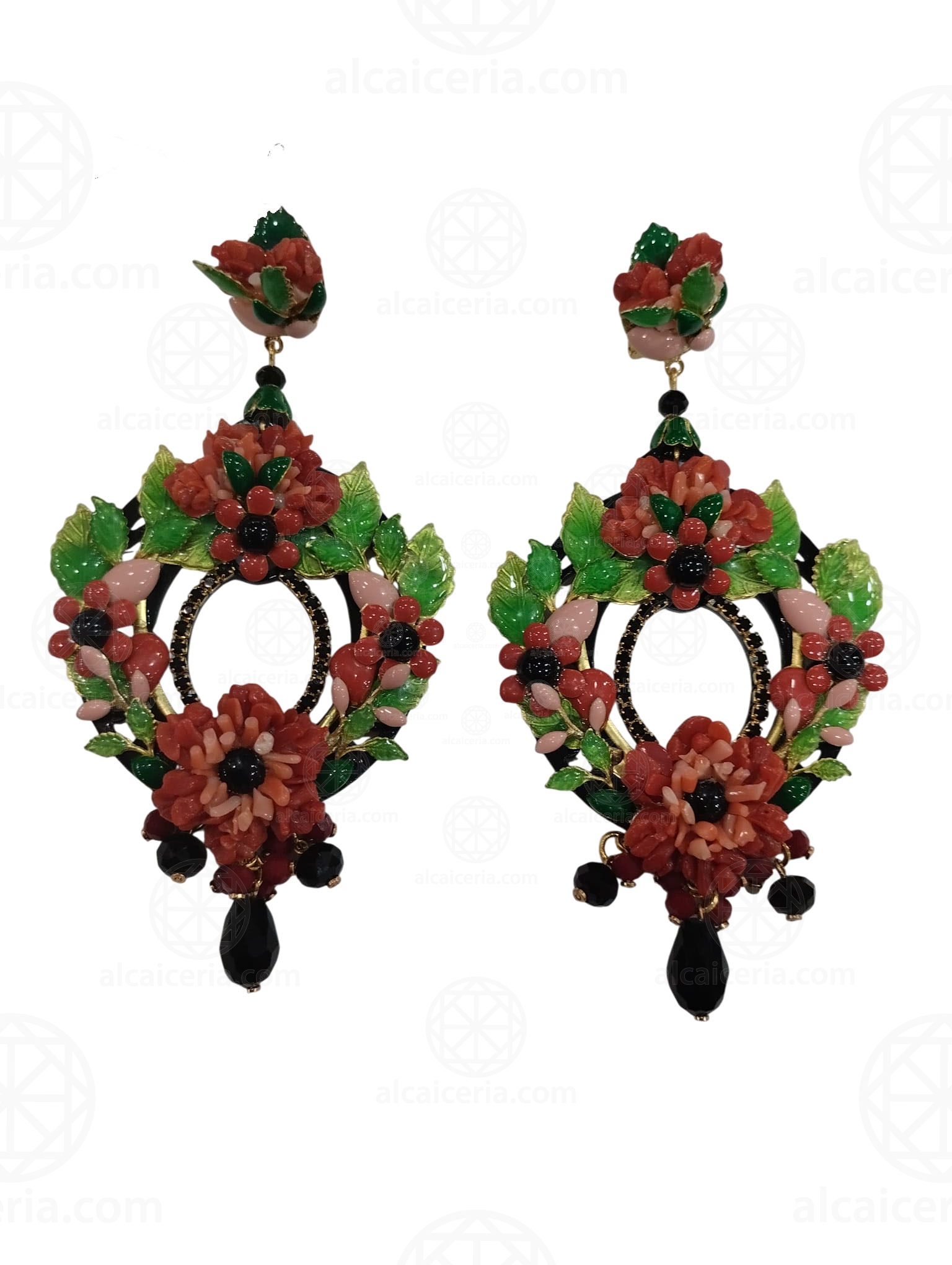 Pendientes Esmalte y Coral. Diseño de Morlote. Medidas: 10*5CM.