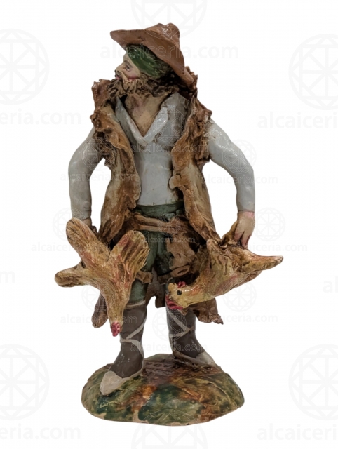 Shepherd with hens, 15 cm. Made of polychrome clay by the "Artesania Mariscal" workshop in Granada. This photo is indicative due to its handcrafted nature.