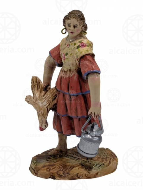 Shepherdess with Hen and Milkmaid, 15 cm. Made of polychrome clay by the "Artesania Mariscal" workshop in Granada. This photo is indicative due to its handcrafted nature.