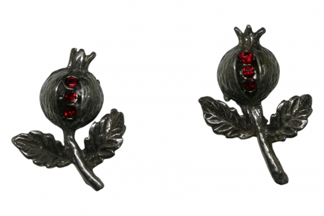 Pendiente Granada en Plata de Ley. Peso 0.6 gr aprox. Medidas 1 x 0.7 mm.