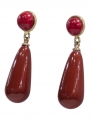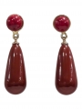 Coral teardrop earrings, gold-plated sterling silver. Measurements: 35x10 mm.