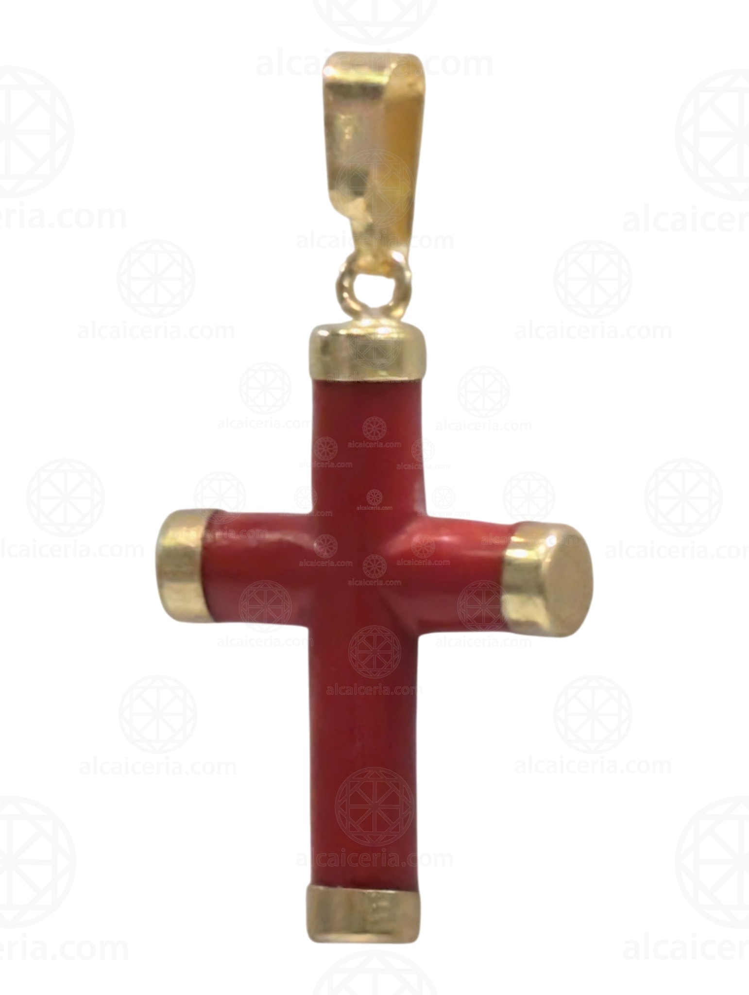 Cruz coral, montada en plata de ley dorada. Medidas 26x16 mm.