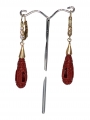 Coral teardrop earrings with arches, made of gold-plated sterling silver. Measures 60 mm h.