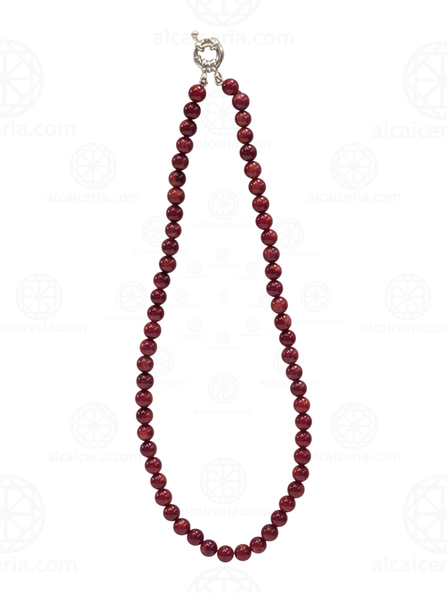 Collar coral rojo, montado en plata de ley. Medidas 30 Cm.