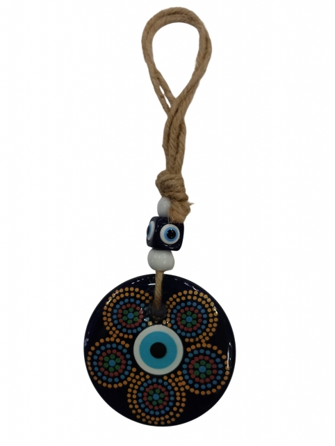 Amuleto ojo turco de cristal para colgar. Medidas: 22 cm largo, 8 cm Ø.