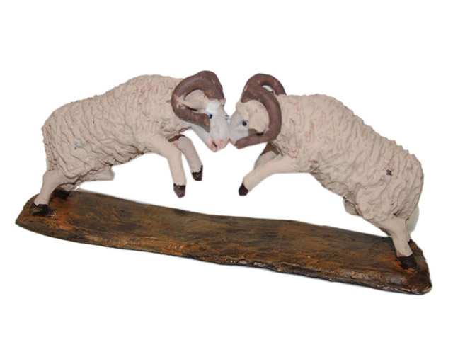 Carneros peleando. Para figuras de 40 cm. Pieza modelada a palillo por Manuel Villarán.