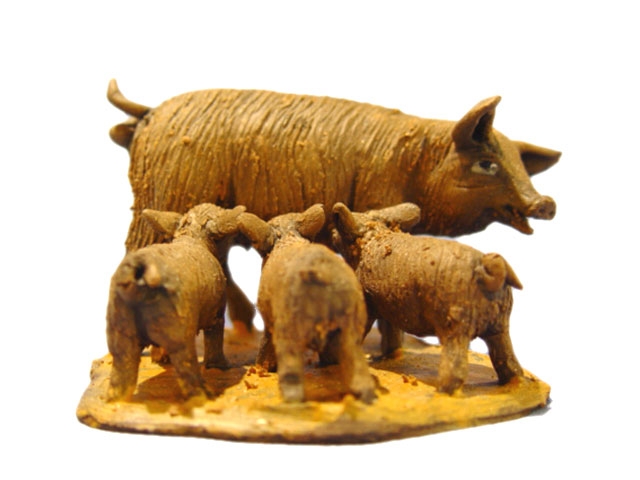 Pigs. For figures 10 cm. Modeled piece by Manuel Villarán.