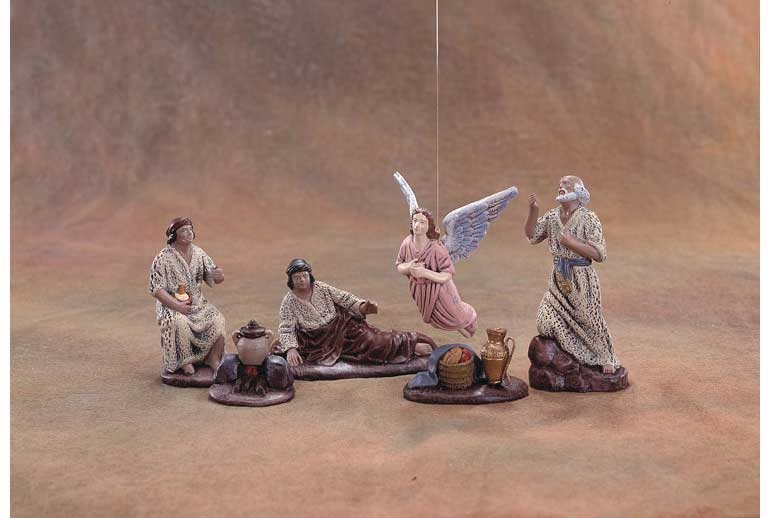 Anunciacion a los pastores en barro policromado. Diseño de Belenes Galán en 8 cm.