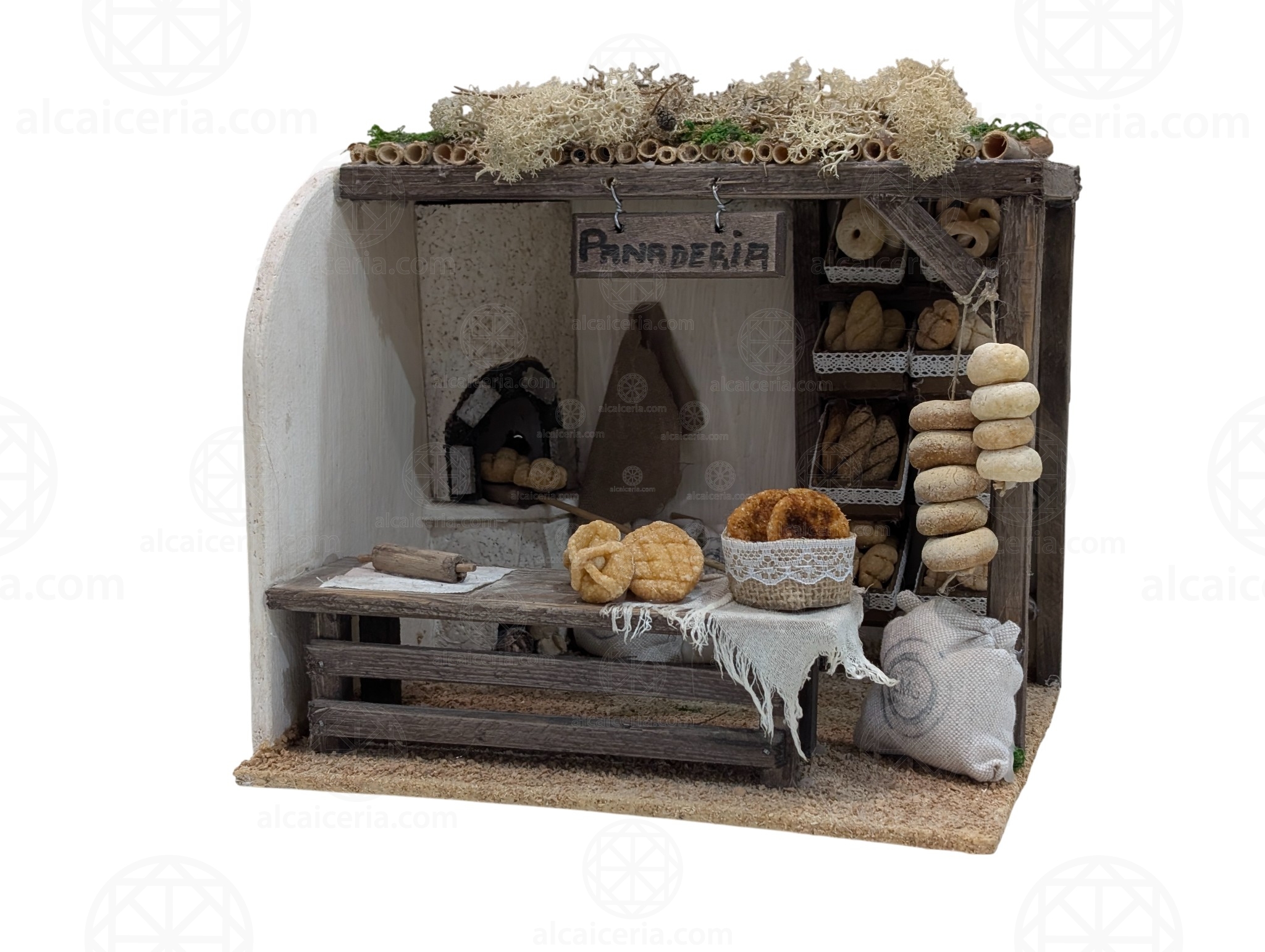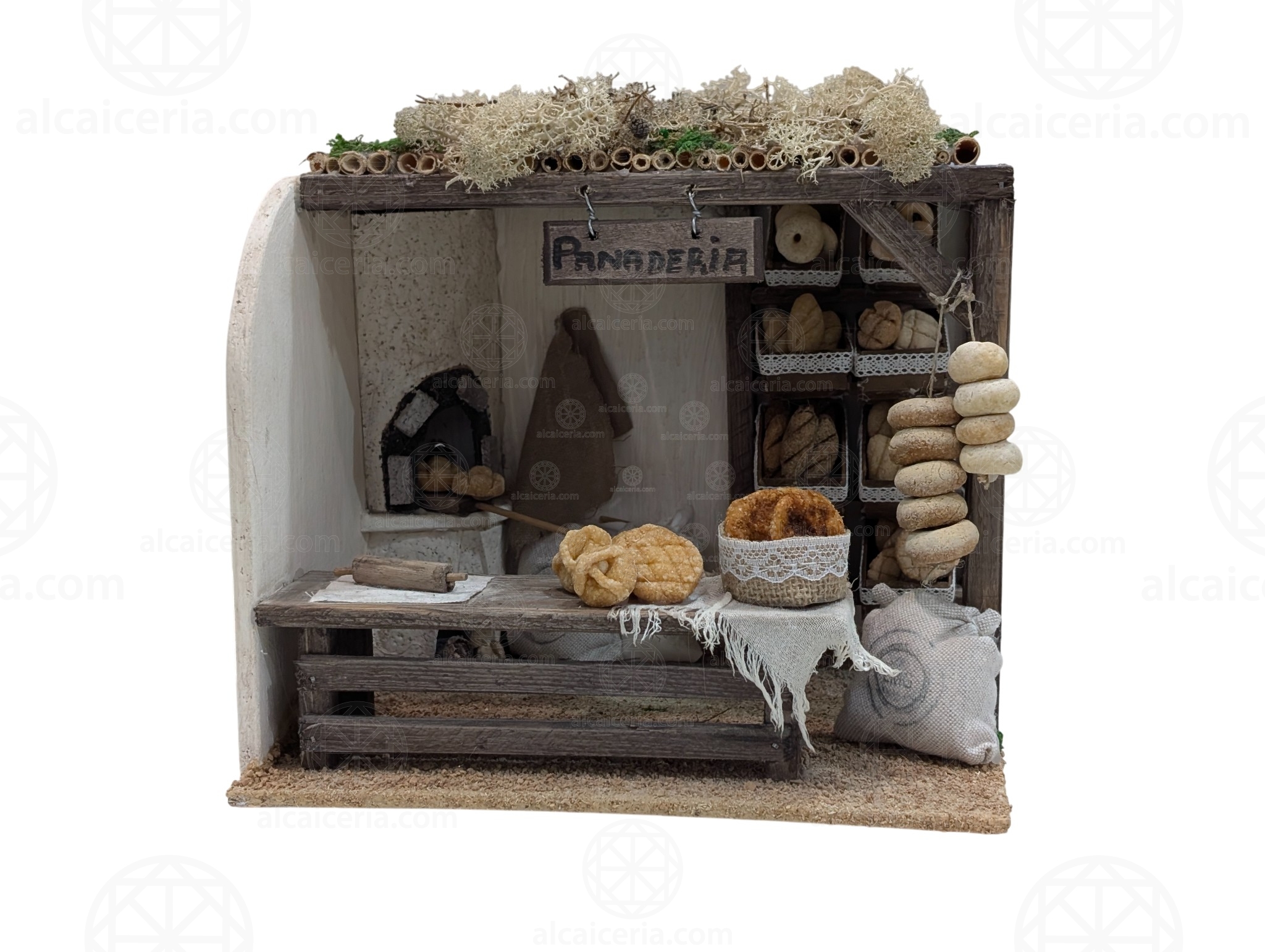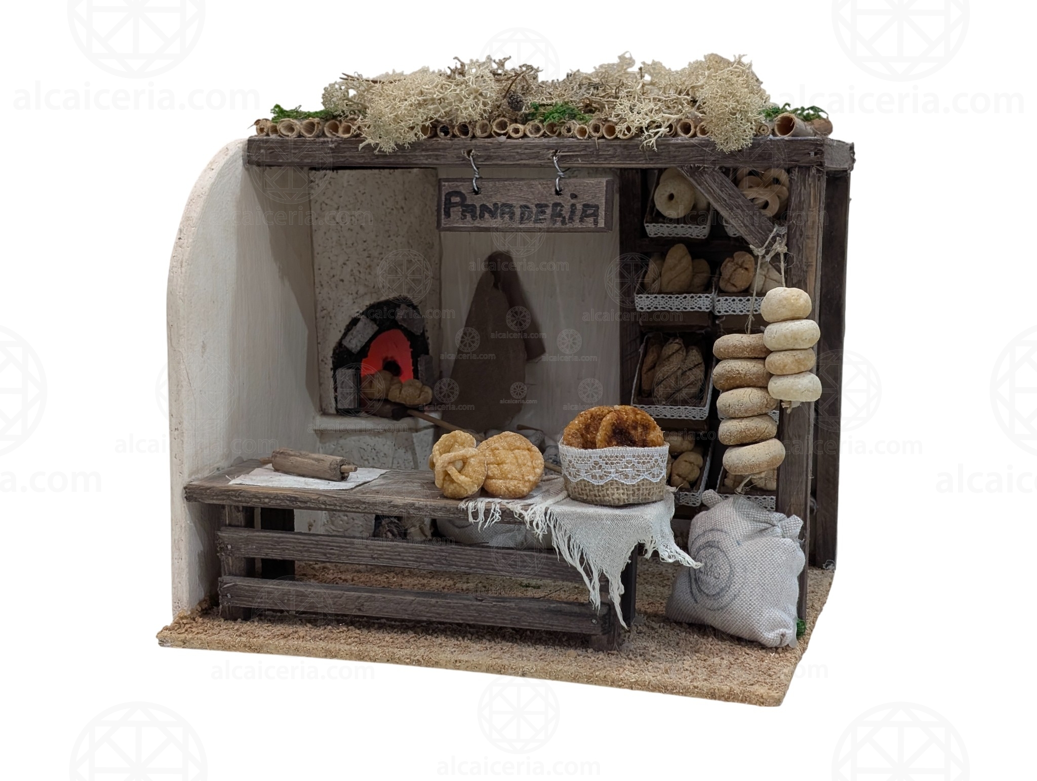 Panadería: Quesos y embutidos ,realizado por Lola. Medidas Largo x Ancho x Alto 25x20x20 cm. Para figuras 25-30 cm. Con luz en el horno.