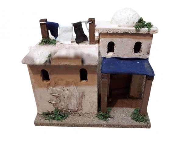 Moorish house with clothesline for 5 to 7 cm figures and for distance. Measurements: 18x10x16 cm. Made of wood. Photo is for guidance only due to the handmade nature of the piece.