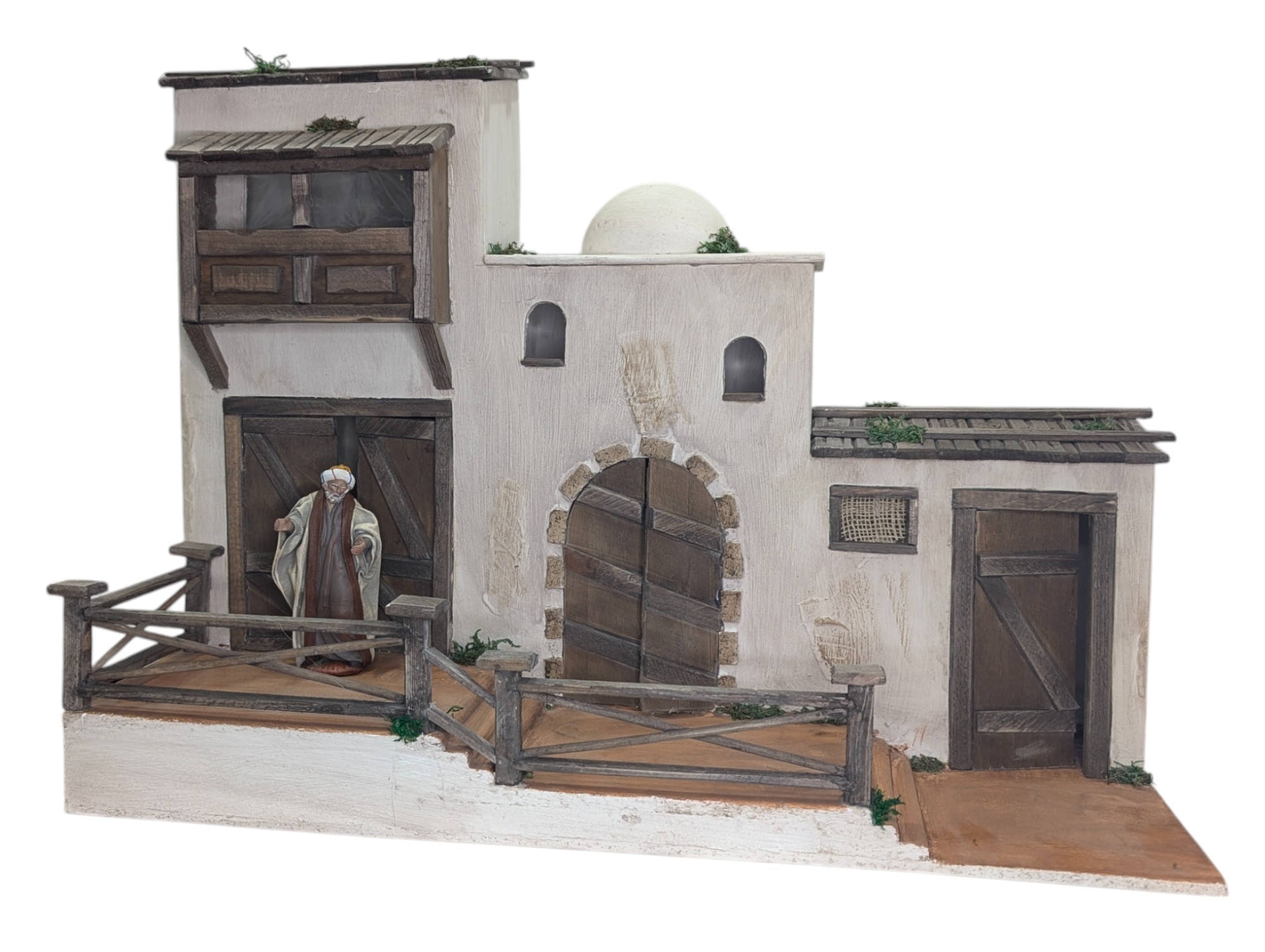 Calle tres estancias para figuras 10- 12 cm. Medidas: (LxAxH): 60x42x25 cm. Realizada en madera. Foto orientativa debido al carácter artesanal de la pieza.
