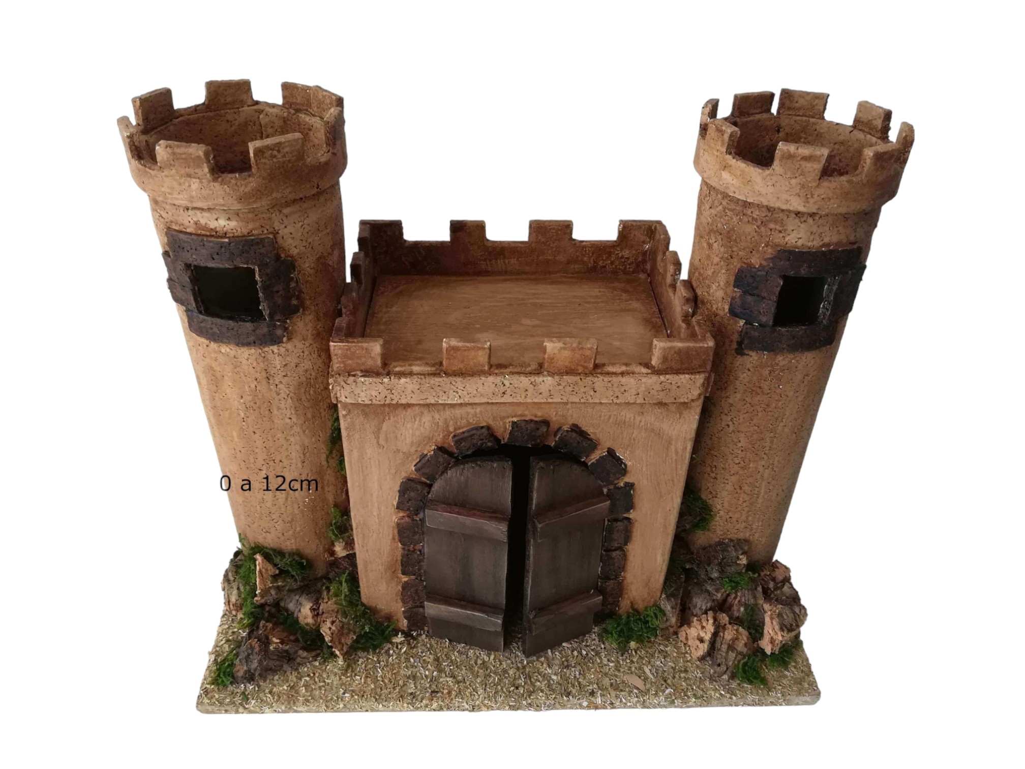 Castle for 10-12 cm figures. Measurements: (LxWxH): 30x15x26 cm. Made of cork and wood. Orientative photo due to the artisanal nature of the piece.