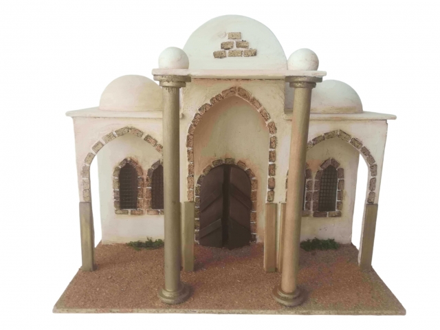 Temple for figures of 12-14 cm. Measurements: (LxWxH): 43x22x35 cm. Made of cork and wood. Orientative photo due to the artisanal nature of the piece.