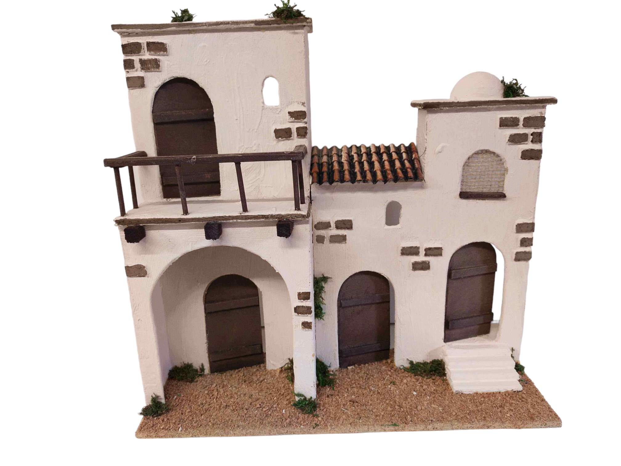 Moorish facade No. 2 for figures of 8-10 cm. Measurements: (LxWxH): 36x12x35 cm. Made of wood. Orientative photo due to the artisanal nature of the piece.