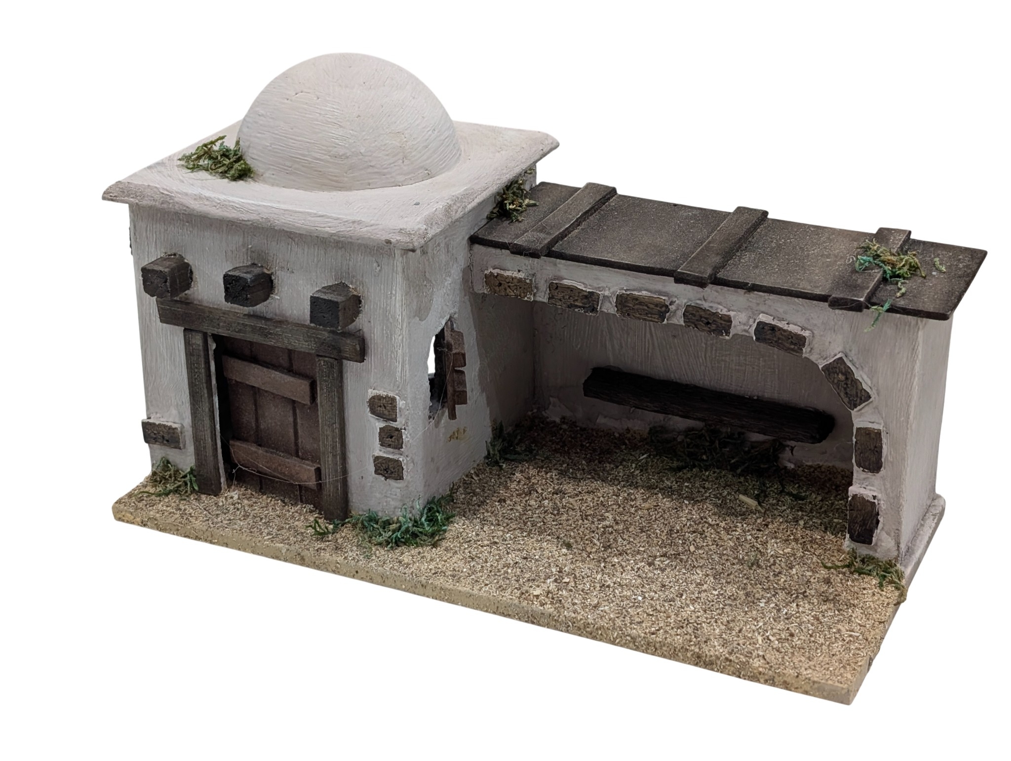 Moorish house for figures measuring 5 to 7 cm. Dimensions: 12 x 25 x 15 cm. Made of wood. This photo is indicative due to the handmade nature of the piece.