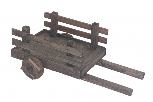Cart for 10-12 cm figures. Measurements: (LxAxH): 21x12x8 cm. Made of wood. Orientative photo due to the artisanal nature of the piece.