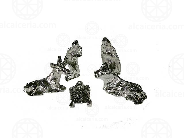 Belén de metal chapado en níquel de 5 figuras de 1.5 cm. Foto orientativa.