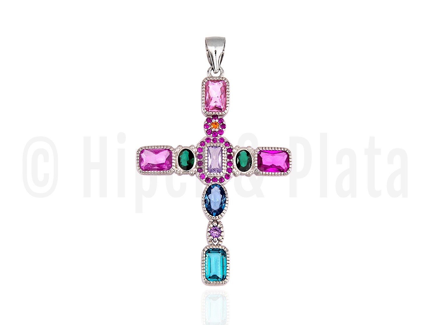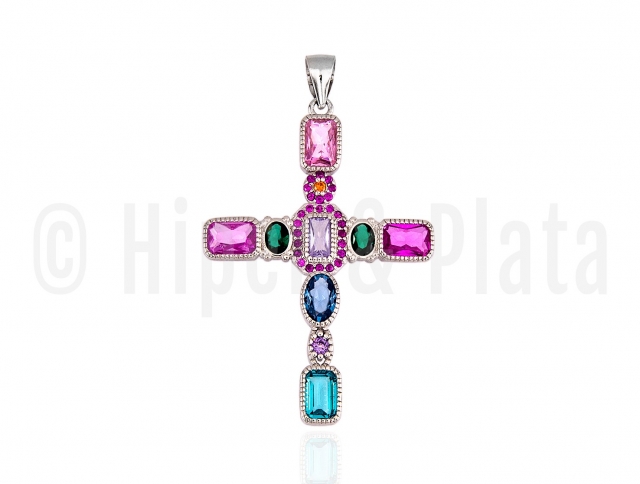 Colgante cruz con circonitas en plata rodiada Largo de 41mm. (con asa). Largo de 38,5mm. (sin asa). Ancho de 28,5mm. Metal: Plata de 1ª ley de 925 milésimas.