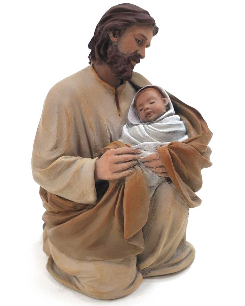 Joseph with baby Jesus 15cm. Hebrew Nativity Collection of 15 cm. Figure height 10.5 cm. Model of Montserrat Ribes.