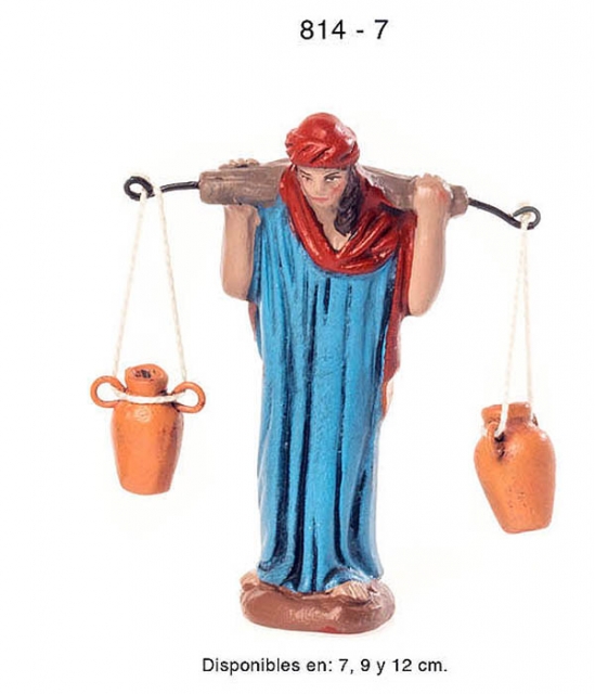 Samaritana con anforas de estilo Samaritano en barro lienzado, serie 800. Realizado por figuralia en 9cm. Foto orientativa debido al carácter artesanal de la pieza.