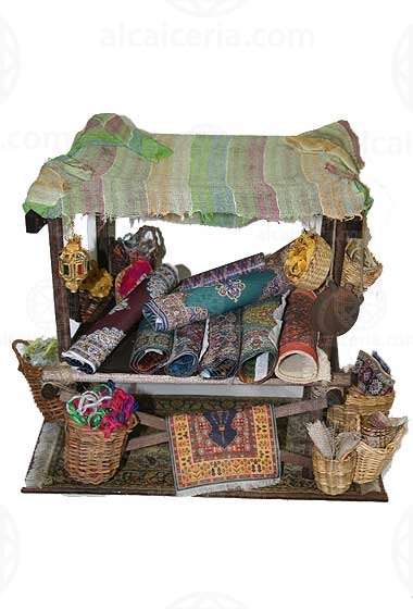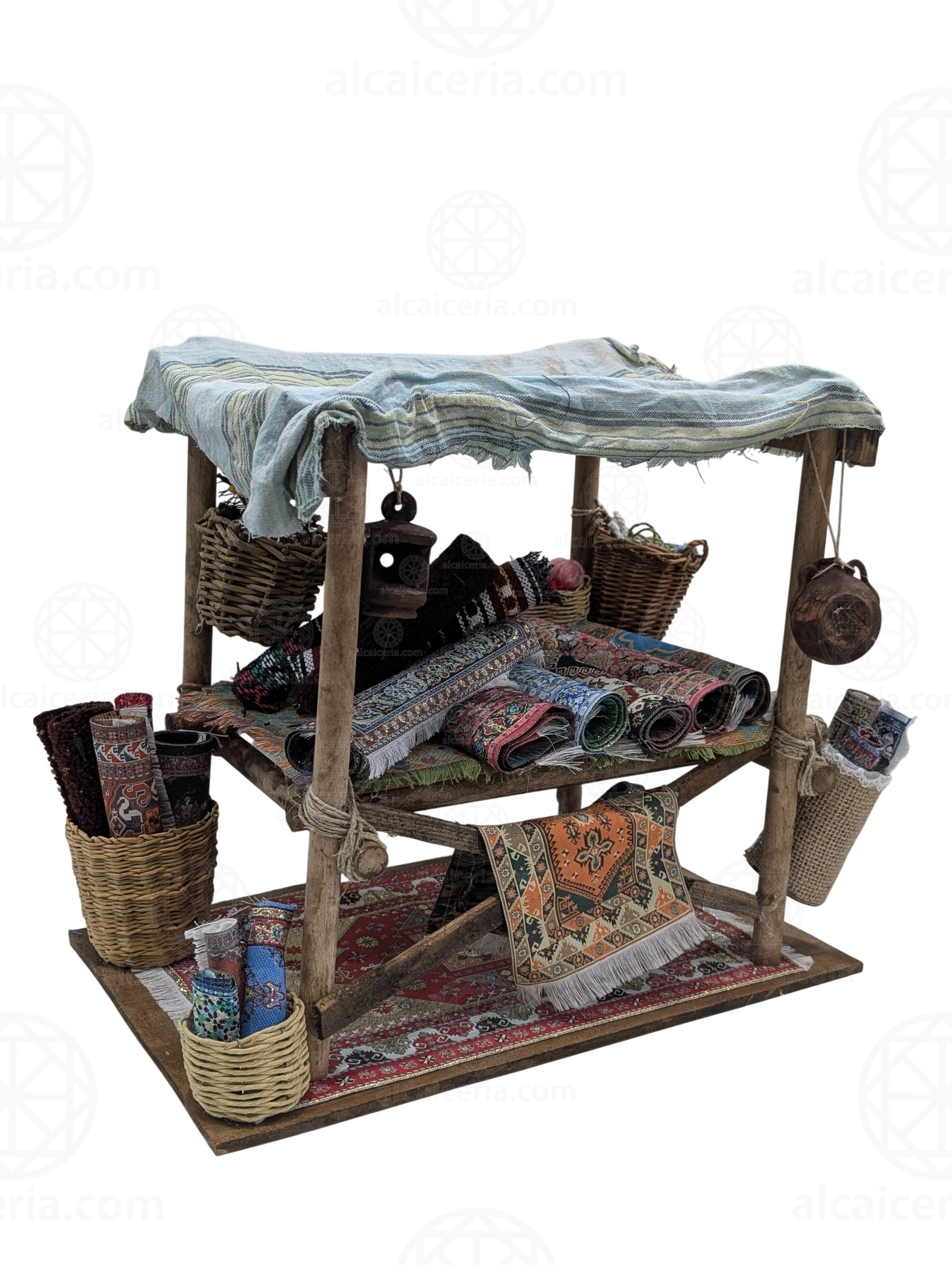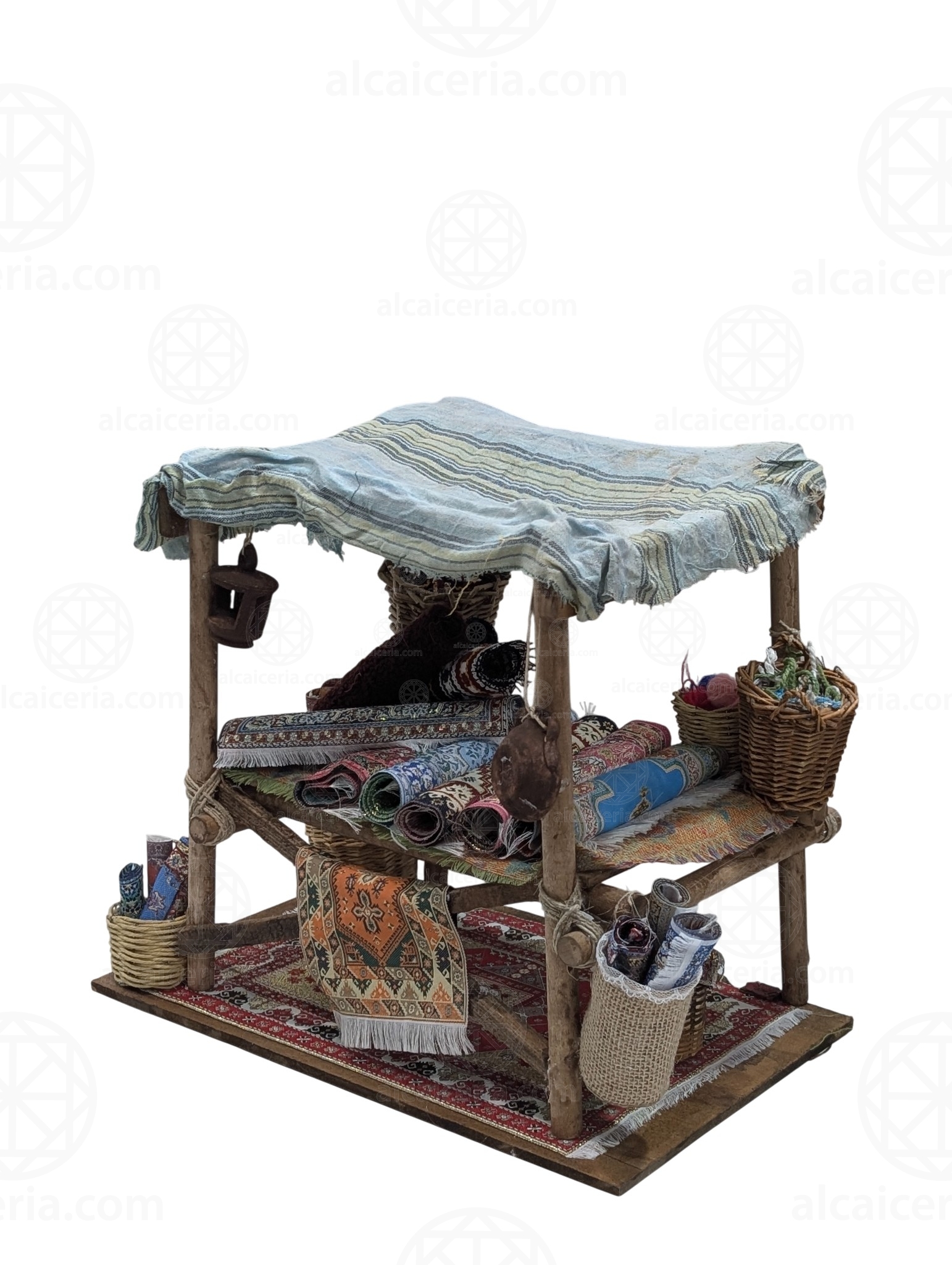 Puesto de alfombras,realizado por Lola. Medidas (LxAxH)33x20x30 cm. Para figuras 30 cm.