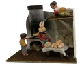 Picaro en la panaderia. Medidas 10x15x12 cm. Escena elaborada por Lola para las figuras de barro granadino de Alborox. Foto orientativa debido al caracter artesanal de la escena.