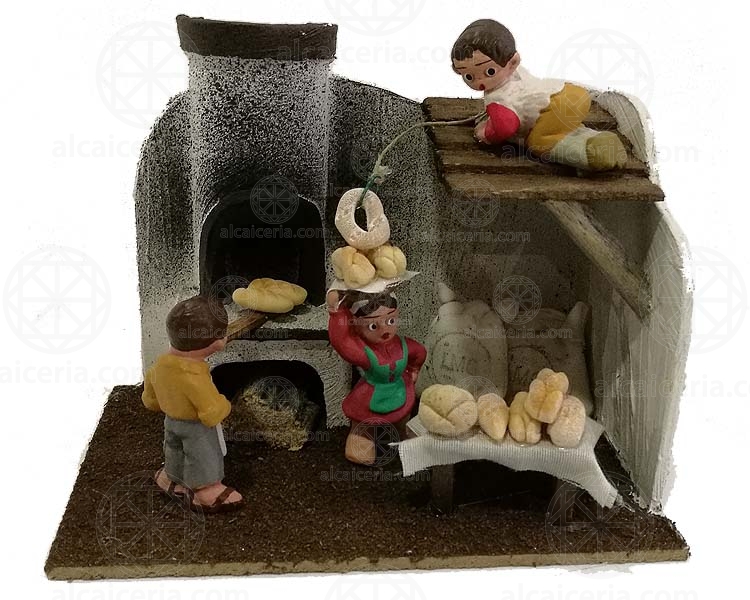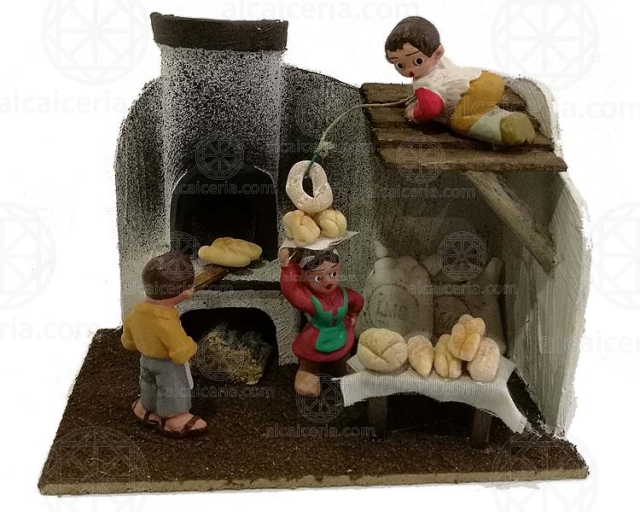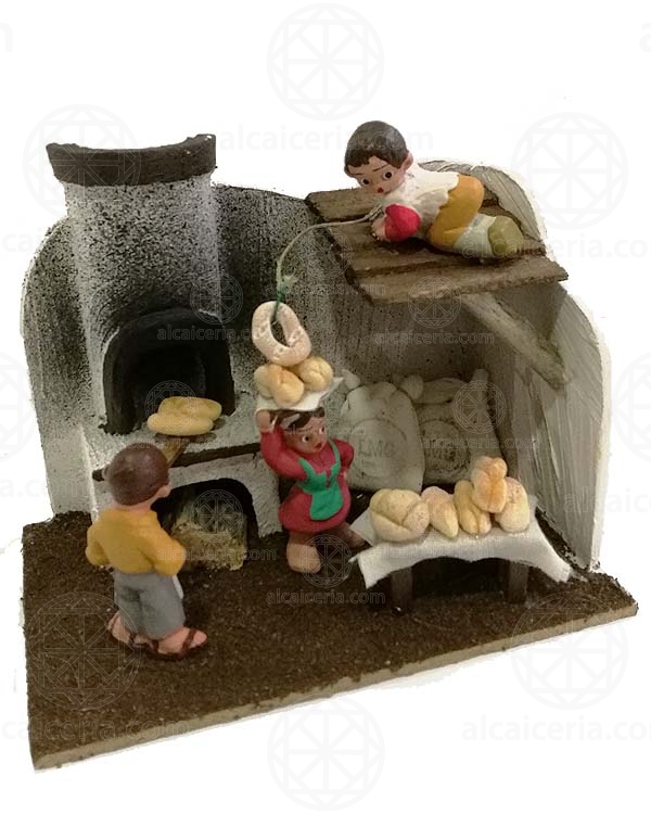 Picaro in the bakery. Measures 10x15x12 cm. Scene elaborated by Lola for the granadino clay figures of Alborox. Orientative photo due to the traditional nature of the scene.