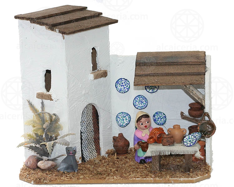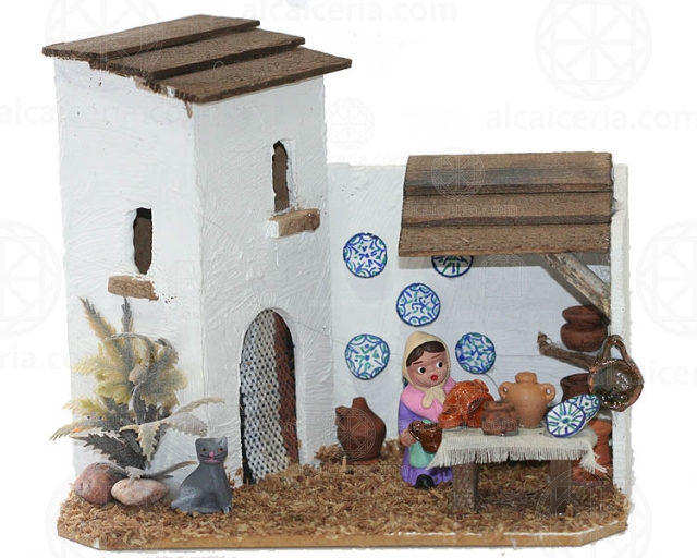 Ceramic shop. Measures 16x11x14 cm. Scene elaborated by Lola for the Alborox figures. Orientative photo due to the traditional nature of the scene.