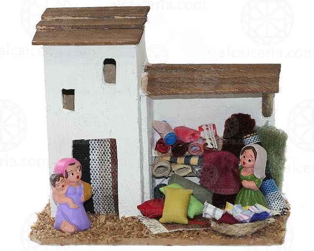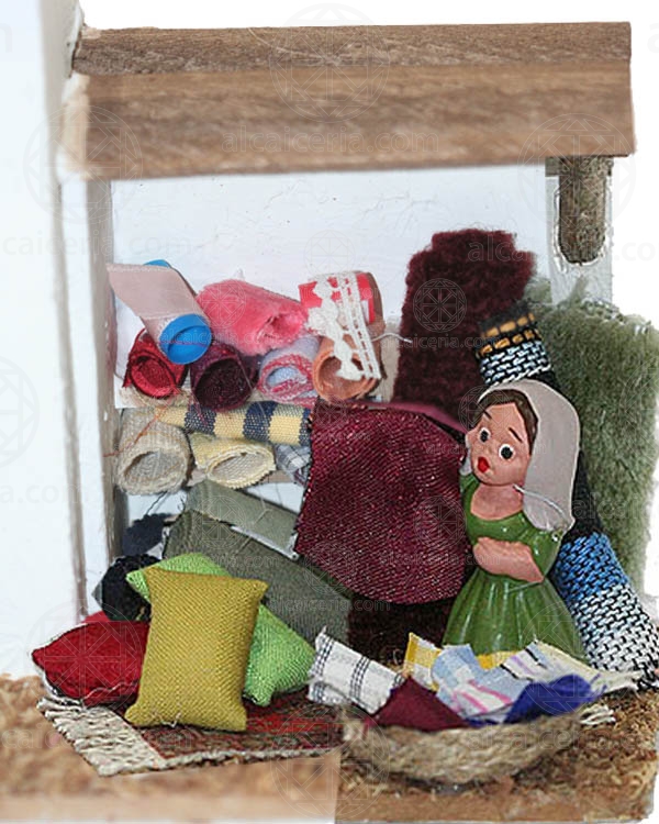 Cloth store. Measures 16x10x14 cm. Scene elaborated by Lola for the Alborox figures. Orientative photo due to the traditional nature of the scene.