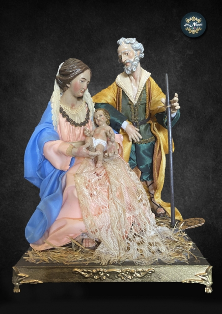 PESEBRE SAN GREGORIO ARMENO 25-28 CM (NUEVO)- GRUPO COMPACTO CON PEANA MADERA. NATIVIDAD BARROCA DEL’700 Natividad con peana de madera. Hermosa obra de artesanía, la Virgen y San José están realizados de acuerdo con la tradición y vestidos como los antiguos pastores en el estilo napolitano del 700. Terracota, policromado al óleo , ropajes de seda y peanas de madera. 100 % a mano. Medidas : 20x20x70 cm.