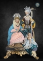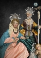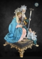 PESEBRE DI SAN BIAGGIO DEI LIBRARI 25/28 CM Natividad con peana y arquitectura renacentista. Hermosa obra de artesanía, la Virgen, San José están realizados de acuerdo con la tradición y vestidos como los antiguos pastores en el estilo napolitano del 700. Medida del pesebre: 20x20x35cm . Pieza compacta con peana de madera.