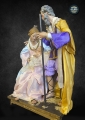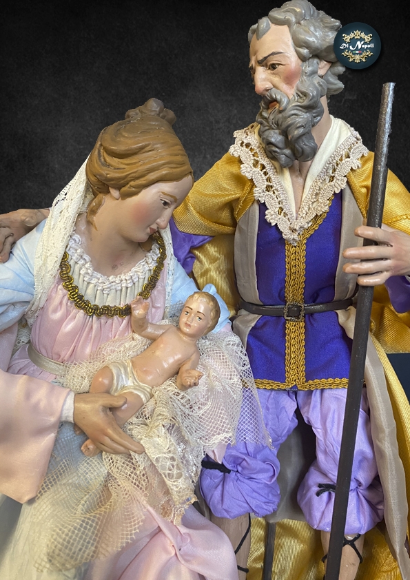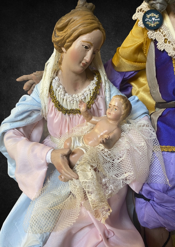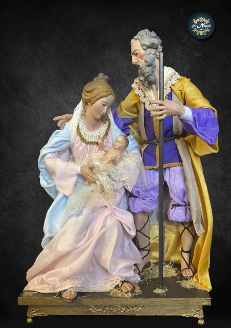 PESEBRE NAPOLITANO SANTA CHIARA 35-38 CM -Grupo compacto con peana 30x20x40 cm. Natividad con peana y arquitectura renacentista. Hermosa obra de artesanía, la Virgen, San José están realizados de acuerdo con la tradición y vestidos como los antiguos pastores en el estilo napolitano del 700.