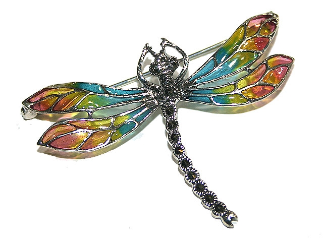 Brooch blue-yellow-pink dragonfly silver. Weight 6 gr. Measures 5.8x4.2 cm.