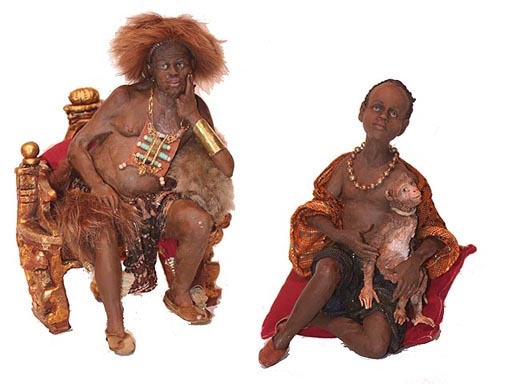 Group King enthroned with monkey boy 25 cm. Produced by Angela Tripi.