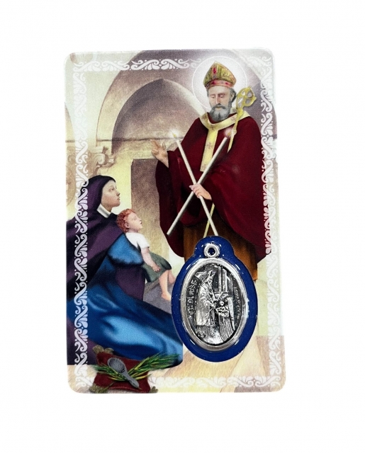 Estampa plastificada con medalla en metal incrustada y oración en el reverso. Medidas 8.7 cm x5.4 cm. SAN BLAS