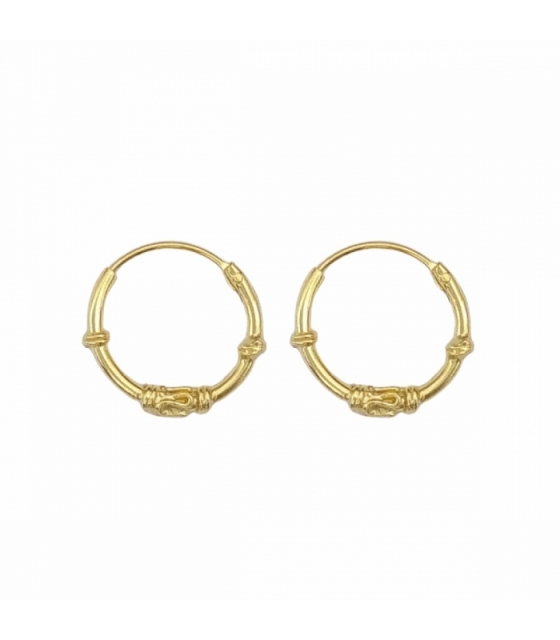 Aro Labrado Plata con baño de oro 12 X 1.2mm. Precio Par.