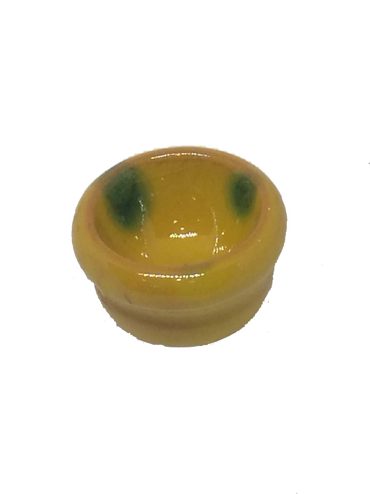 Cuenco amarillo. Medidas 2.4 cm Ø y 1.5 h cm. Para figuras 4-10 cm. Realizado artesanalmente en barro vidriado.