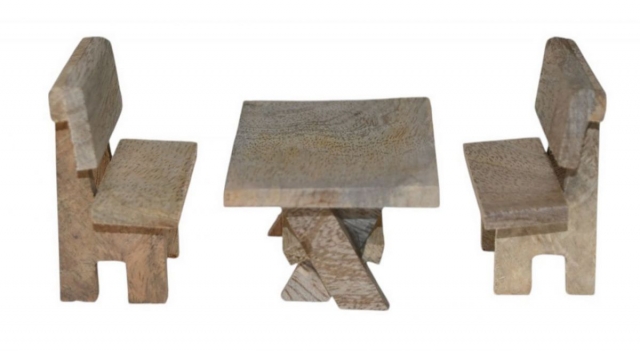 Table and two chairs set. Measures 7*3cm For 8/10cm figures