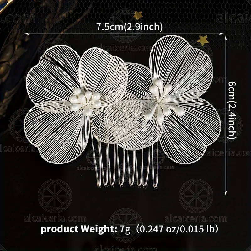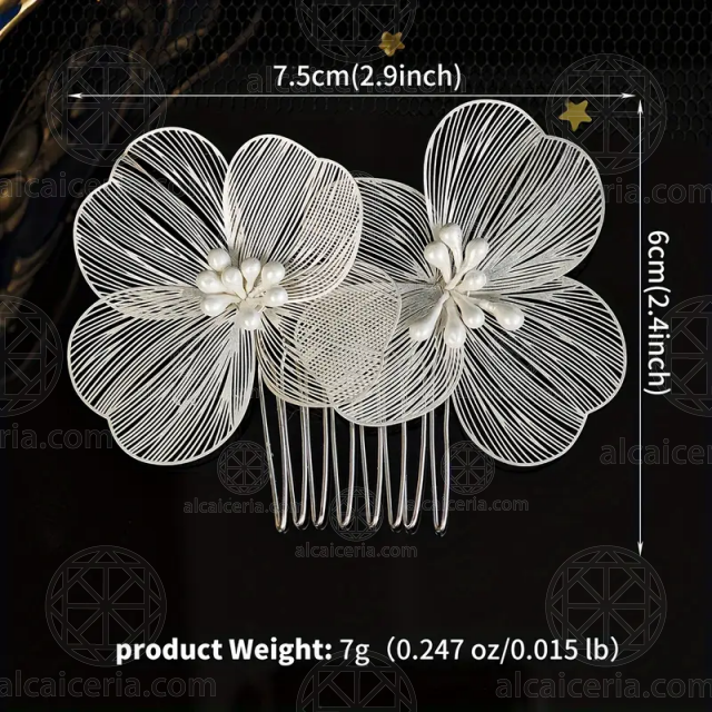 Peina pelo dorada rosa para novia. Medidas 7.5 x 6 cm.