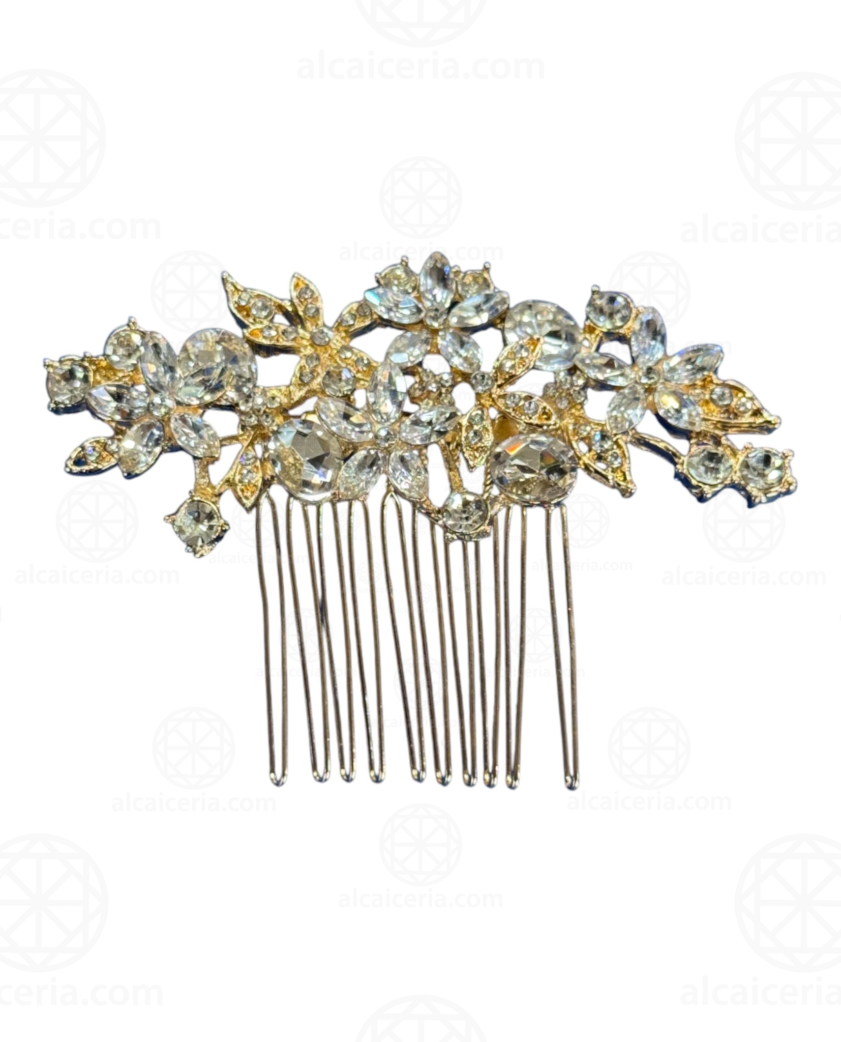 Peinecillo con perlas y detalle dorados de stras. 8CM.