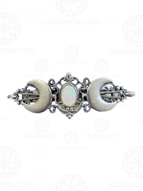 Pasador de pelo con piedra imitación de ópalo y luna.