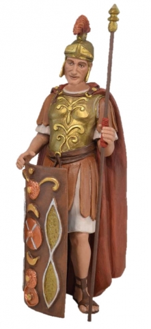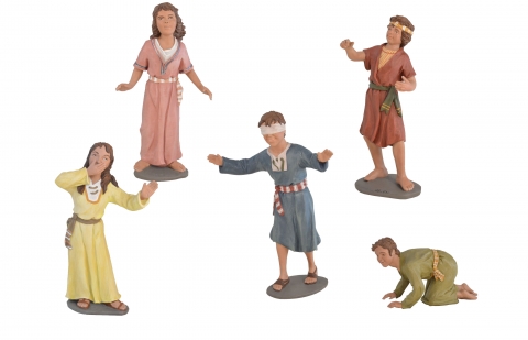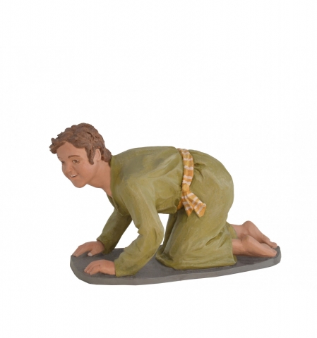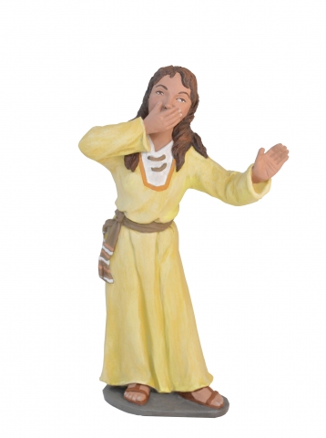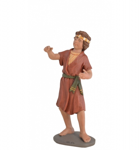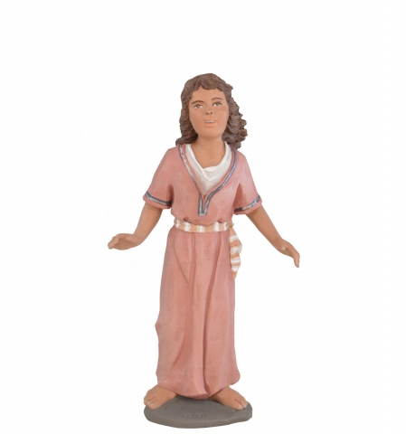 Young shepherdess with child. Model 12026, 12 cm. Designed by Ángeles Camara, made of ceramic clay and decorated with acrylic paint.