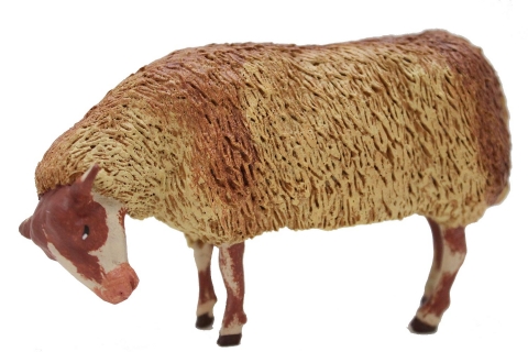 Borrega lana macho cabrío con las patas metálicas para figuras de 18 cm. Modelo 18078. Diseño de Ángeles Camara realizado en pasta cerámica y decorado con pintura acrílica.