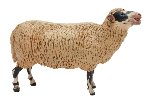 Shhep wool goat with metallic legs for figures of 18 cm. Model 18078. Design by Angeles Camara made of ceramic paste and decorated with acrylic paint.