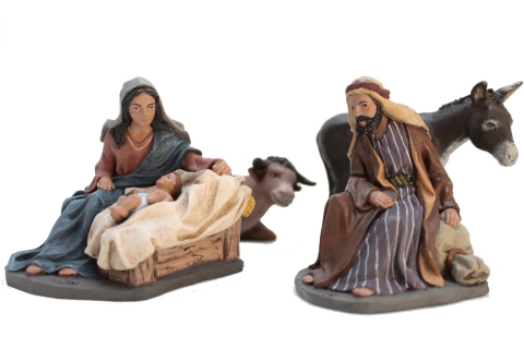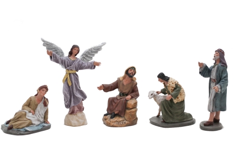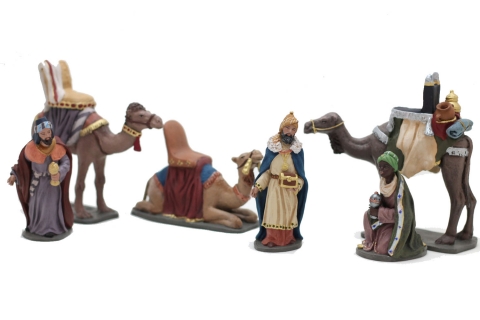 Group Kings Worshiping with camels 6 pieces. Model 9010 in 9 cm. Design by Angeles Camara made of ceramic paste and decorated with acrylic paint.