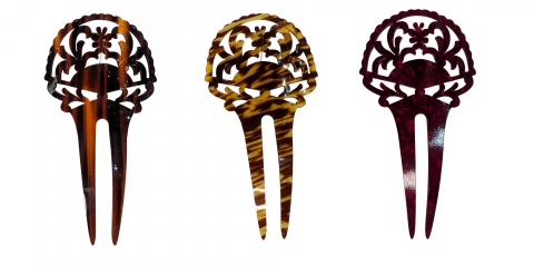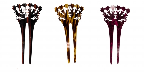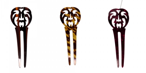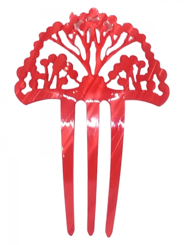 Horquilla en nácar rojo calada, hecho a mano en España. Medidas 9 x 6 cm.